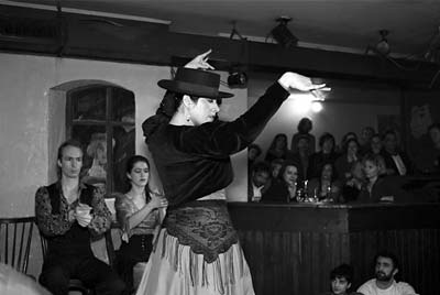 Die Aufnahme entstand 1993 während einer Flamencovorführung im Salsa. Das war eine bekannte Berliner Salsa- und Latinokaschemme. Das Bild wurde mit einer relativ langen Belichtung und einem Aufhellblitz fotografiert. In der Detailvergrößerung sieht man einen Geisterschatten um die Nase, der bei dieser Aufnahmetechnik kaum zu vermeiden ist.
