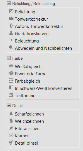 Die Liste der Bildbearbeitungsfunktionen ist lang, jedoch war sie das bereits in den Vorversionen. Besser angeboten werden die Auswahl-, Pinsel- und Linienwerkzeuge. Für sie ist es nicht mehr nötig, eigene Register aufzuklappen.![]() |