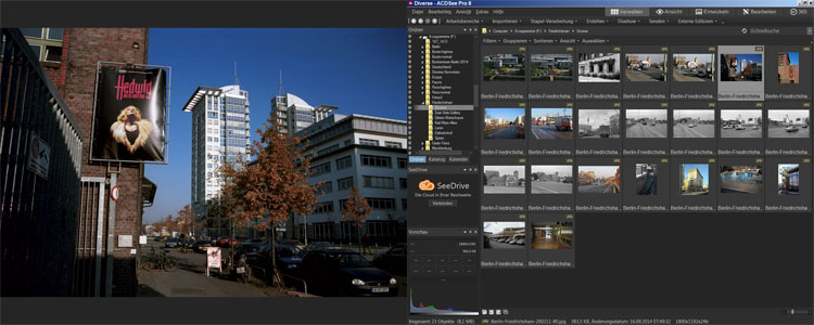 ACDSee Pro 8 ist ein Programm zur Konvertierung von RAW-Dateien, Bildbearbeitung und Bildverwaltung. Weiterhin ist ACDSee Pro 8 ein extrem flotter Bildbetrachter. Das kanadische Unternehmen ACD Systems entwickelt seit 1994 Programme zur Bildbetrachtung, die immer mehr Funktionen bekamen. Die verschiedenen ACDSee Versionen gehörten stets zu den besten ihrer Art.