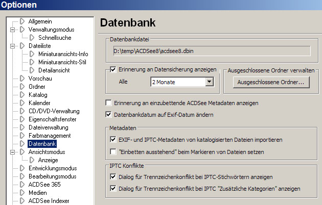 Verbesserungsvorschlag: Wenn ACDSee mehrmals geöffnet ist, sollte man für jede offene Version unterschiedliche Datenbanken definieren können.