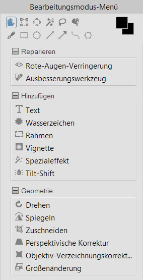 | Bearbeiten | Bildbearbeitung mit vielen Werkzeugen und Ebenenfunktion |