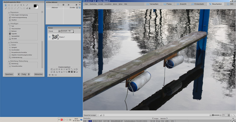 Die Ebenenbearbeitung ist ein Highlight von ACDSee Ultimate 9. Sie erweitert die Möglichkeiten der Bildoptimierung beträchtlich. Im Modus 'Bearbeiten' kann mit Ebenen gearbeitet werden.![]() Hintergrund |