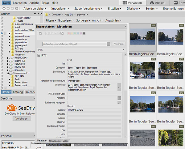 Das Ergebnis ist ein übersichtliches Formular und ohne Scrollbalken zur Ansicht und Eingabe der IPTC Infos.