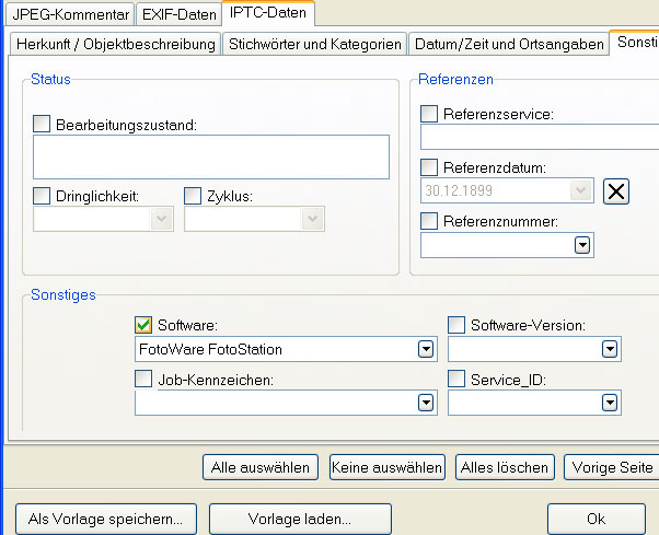 Danach erkundet man die IPTC-Einträge und entdeckt dort ev. einen Hinweis auf eine weitere Software. FotoStation von FotoWare trägt sich gerne unter 'Software' ein.