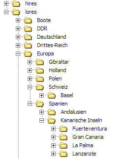 Die Verwaltung der vorbereiteten Dateien und der Upload findet mit einem effizienten Dateimanager statt. Wir nehmen den 'Total Commander'. Die Schritte sind bestens organisierbar und sehr schön ist das Erkennen durch Total Commander, welche Dateien bereits im Web sind und welche nicht. Entsprechend kann man vorgeben, dass nur die neuen Dateien hochgeladen werden, wenn das die Zielstellung ist. Lokal sollte dazu die gleiche Ordnerstruktur vorhanden sein, wie sie in den Higres- und Lowres-Ordnern im Pixtacy-Archiv online angelegt wurde.