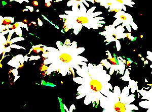 ![]() Mit vier Stufen pro Farbkanal wird das Bild plastischer. Die hellen Blätter werden nicht nur aus Schwarz und Weiss dargestellt sondern aus zwei zusätzlichen Graustufen. |