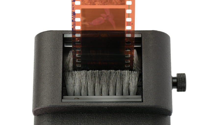 Bürste am Valoi easy35. Der Filmstreifen wird zwischen zwei Bürsten durchgezogen.
