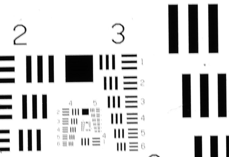 Das USAF 1951 - Resolution Testchart wurde mit der Pentax K-3 III mit einem Balgengerät und einem Rodenstock Rodagon D 75 mm Apo mit verschiedenen Belichtungszeiten fotografiert.