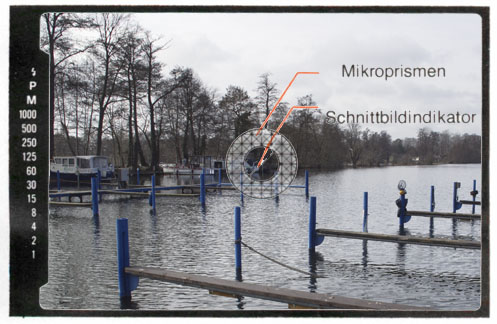 Wer mit Autofokus-Kameras großgeworden ist, wird beim Einstieg in die analoge Fotografie mit manueller Fokussierung vom Sucherbild überrascht sein. Viele Mattscheiben haben mittig ein rundes Feld, das mit einem optischen Effekt hilft, die beste Scharfeinstellung zu erkennen. Das ist gewöhnungsbedürftig und man braucht dazu eine gute Sehkraft. Nach einer Weile hat man den Bogen raus.