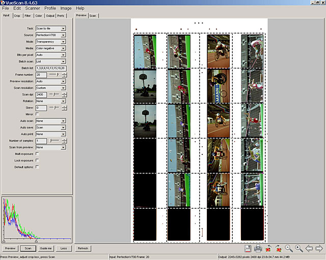 Es sollen Filmstreifen vom Kleinbildfilm (35mm Film) gescannt werden. Moderne Flachbettscanner mit hoher Auflösung ermöglichen mit der richtigen Software eine stark automatisierte Digitalisierung der Filme. Im Gegensatz zu den herstellereigenen Programmen beherrscht VueScan keine automatische Bilderkennung, hat aber in anderen Bereichen sehr differenzierte Einstellmöglichkeiten und eine ausgezeichnete Schmutz- und Staubkorrektur im Zusammenspiel mit dem Infrarotkanal. Um VueScan auf den Stapelscan von Filmen vorzubereiten sind ein paar Schritte zu erledigen. Beherrscht man diese, sind auch exotische Filmformate wie Panorma und Halbformat unproblematisch.