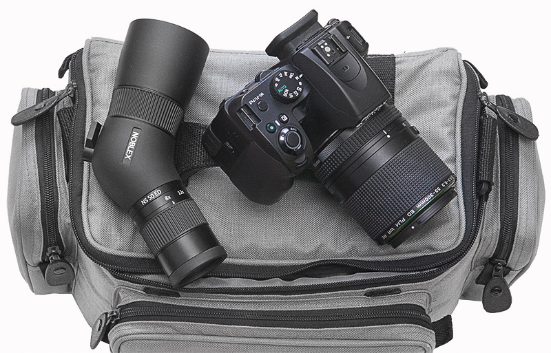 In der umgehängten, gepolsterten Fototasche überlebt das kleine Stativ einen Sturz eher, als das am geschulterten Stativ befestigte große Spektiv. Zwar leistet das ausgewachsene Spektiv mehr, aber das wesentlich kleinere und leichtere ist einfacher mitzunehmen und wird deshalb ev. häufiger benutzt. Es ist also auch eine lohnende Anschaffung für Nutzer von größeren Spektiven, die man aufgrund ihres hohen Wertes, Gewichts und Größe nicht immer mitnehmen möchte.
